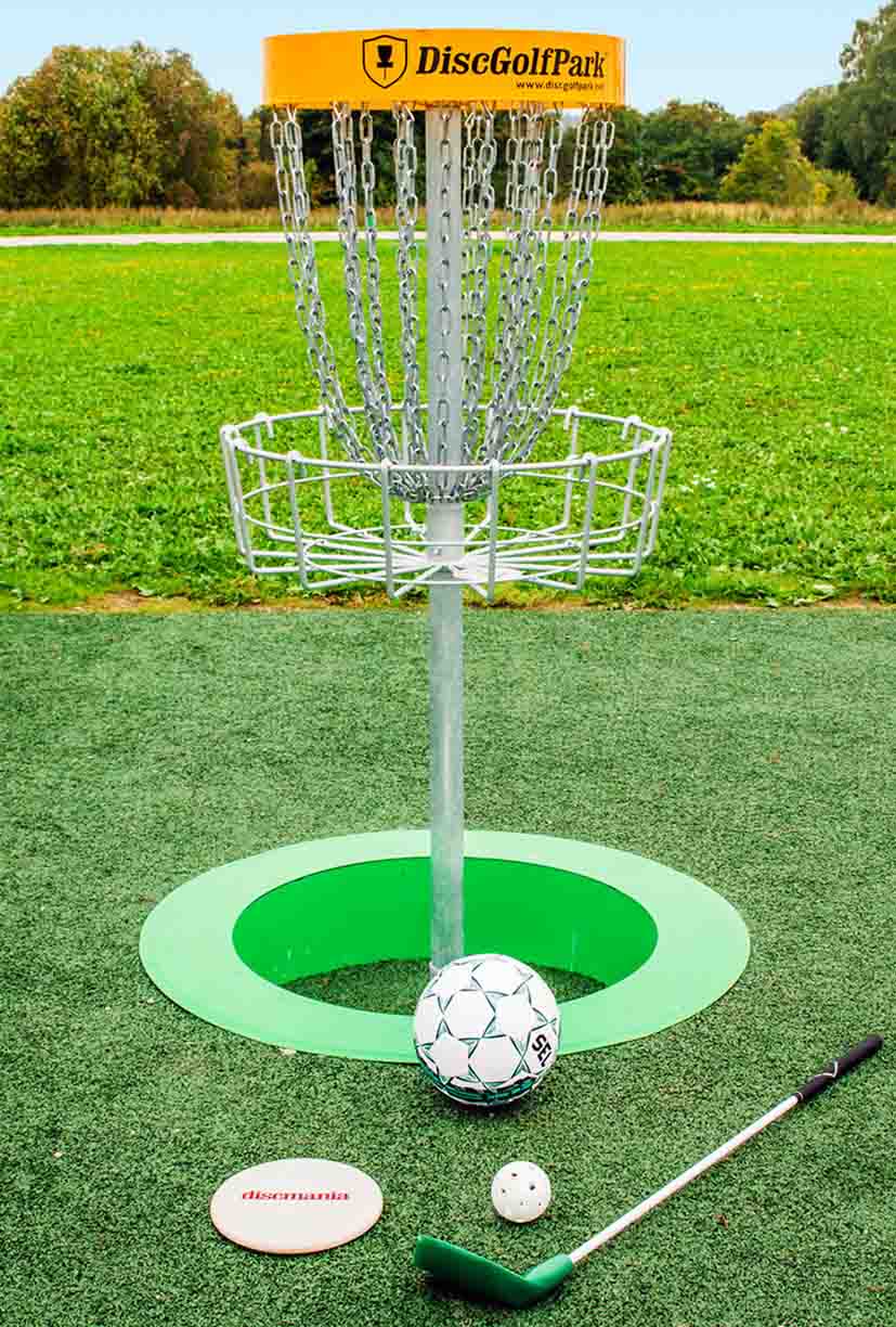 Goda nyheter för sportintresserade, inklusive en självutnämnd discgolfnörd som undertecknad, är att Elmia Park i samarbete med utställaren Spin 18 kommer att bygga upp en multigolfpark utanför mässhallen – ett exempel på hur man på en begränsad yta, och efter parkens unika förutsättningar, kan bygga upp banor för både discgolf, fotbollsgolf och parkgolf.