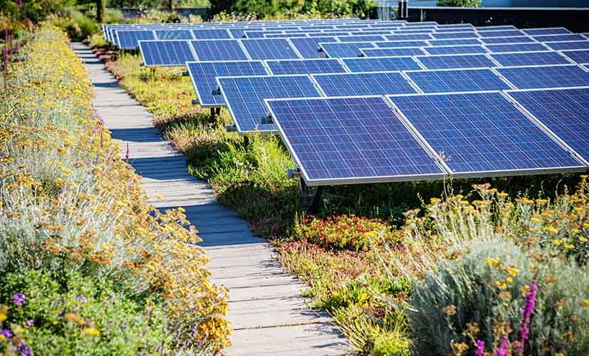Gröna tak med solceller? Javisst. Med Sempergreens lösning placeras solpanelerna högre, och skuggar därmed inte växterna i samma utsträckning.