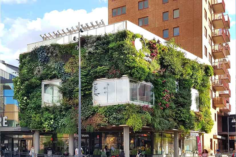 Ett av de företag som arbetat längst med gröna lösningar i stadsmiljö är holländska Sempergreen som installerat växtlighet på väggar och tak i Europa, USA och Australien sedan mitten av 90-talet. På svensk mark är de kanske mest kända för den gröna väggen på Sundstorgets pumphus i Helsingborg (2013) och för det tidigare nämnda sedumtaket på nya Karolinska sjukhuset i Stockholm (2017).